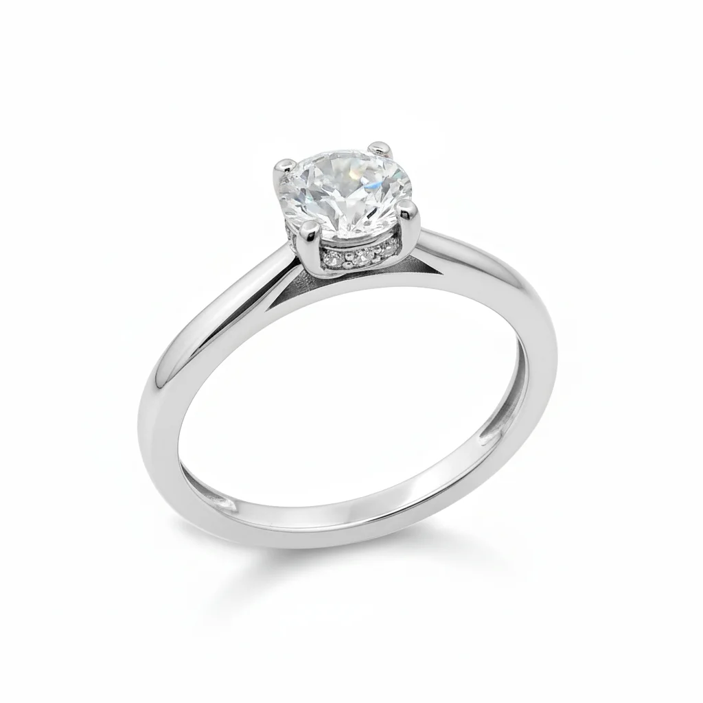 Εντυπωσιακό μονόπετρο δακτυλίδι με ζιργκόν σε λευκόχρυσο 14 καρατίων.