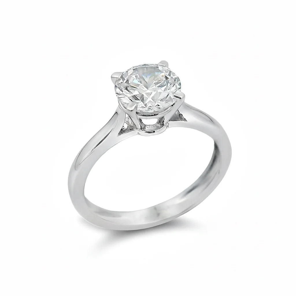 Εντυπωσιακό μονόπετρο δακτυλίδι με ζιργκόν σε λευκόχρυσο 14 καρατίων.
