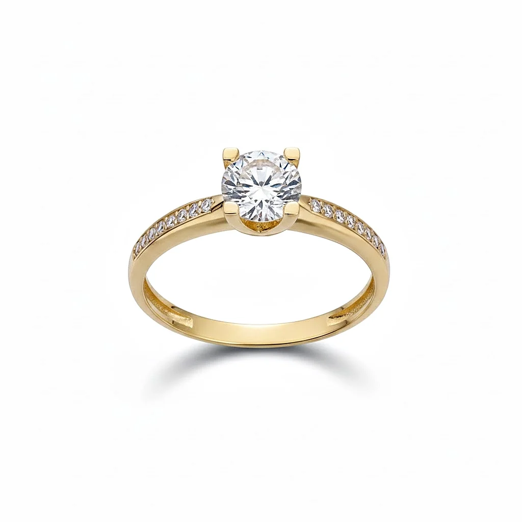 Ένα κόσμημα που συνδυάζει την κλασική κομψότητα με τη μοντέρνα λάμψη, ιδανικό για να επισφραγίσει τις πιο σημαντικές στιγμές σας. Κατασκευασμένο από κίτρινο χρυσό 14 καρατίων, αυτό το δαχτυλίδι προσφέρει μια διαχρονική αίσθηση πολυτέλειας με σύγχρονες λεπτομέρειες. Στο κέντρο δεσπόζει ένα λαμπερό λευκό ζιργκόν, το οποίο αντανακλά το φως με εξαιρετική ένταση. Η πέτρα συγκρατείται από τέσσερις κλάδους που ανασηκώνονται κομψά από τη βάση, επιτρέποντας στο φως να διαπερνά το ζιργκόν από όλες τις πλευρές. Η γάμπα του δαχτυλιδιού είναι στολισμένη με μικρότερα ζιργκόν που καλύπτουν το πάνω μέρος της, προσδίδοντας μια επιπλέον νότα λάμψης που πλαισιώνει την κεντρική πέτρα. Ο χρυσός 14K προσφέρει τη ζεστασιά και την ανθεκτικότητα που απαιτείται για ένα κόσμημα καθημερινής χρήσης που παραμένει αναλλοίωτο στον χρόνο. Ο συνδυασμός της κεντρικής πέτρας με τα πλαϊνά ζιργκόν δημιουργεί ένα συνεχές παιχνίδισμα με το φως. Ο σχεδιασμός του δίνει ύψος στην πέτρα, κάνοντας το δαχτυλίδι να φαίνεται επιβλητικό και αριστοκρατικό στο χέρι. Μια από τις πιο αγαπημένες επιλογές για δαχτυλίδι αρραβώνων που συνδυάζει την παράδοση του κίτρινου χρυσού με τη λάμψη των πετρών.