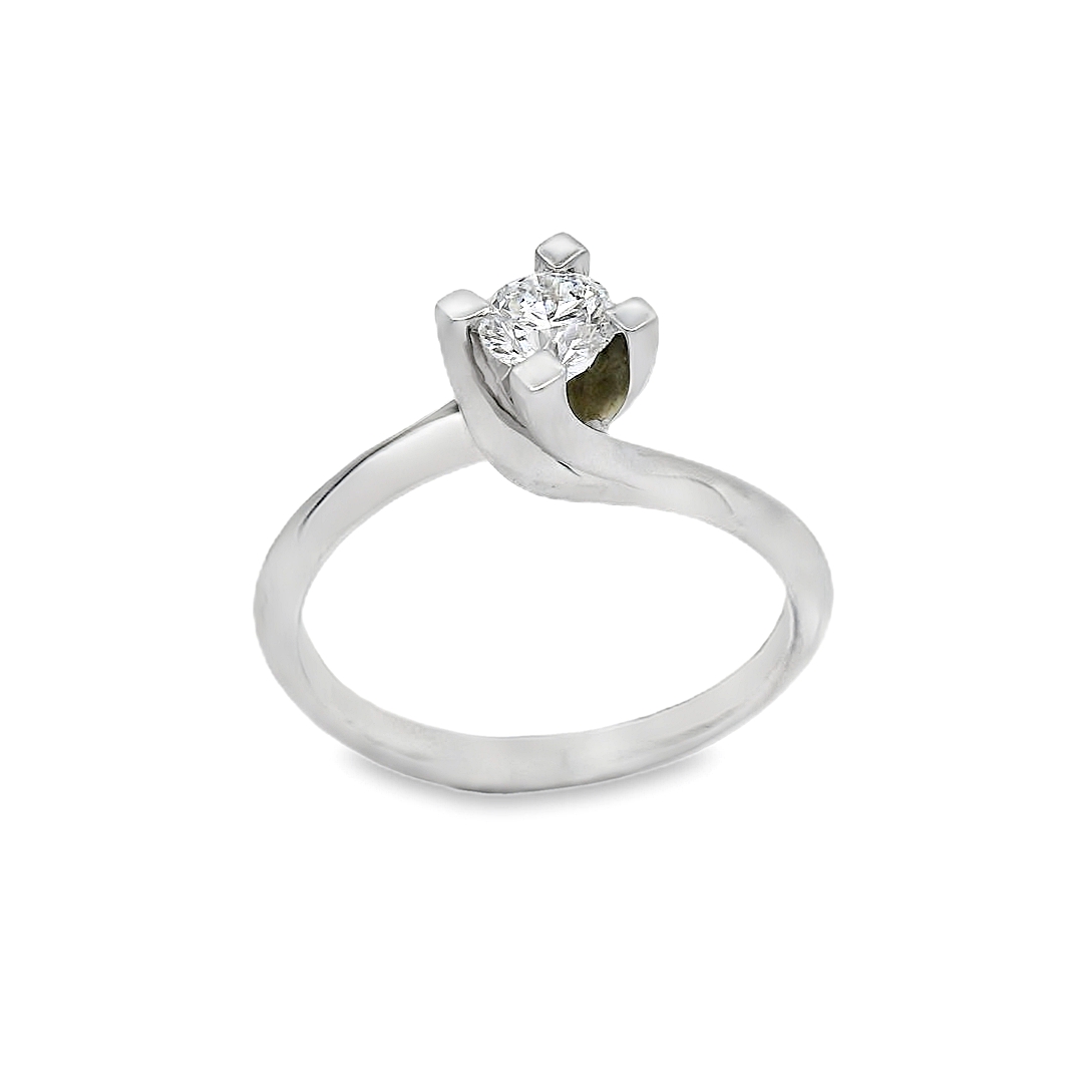 Μονόπετρο δακτυλίδι φλόγα σε λευκόχρυσo 18 καρατίων με διαμάντι 0,30ct χρώματος D και καθαρότητας VS1, με excellent κοπή πιστοποιημένο από το GIA.