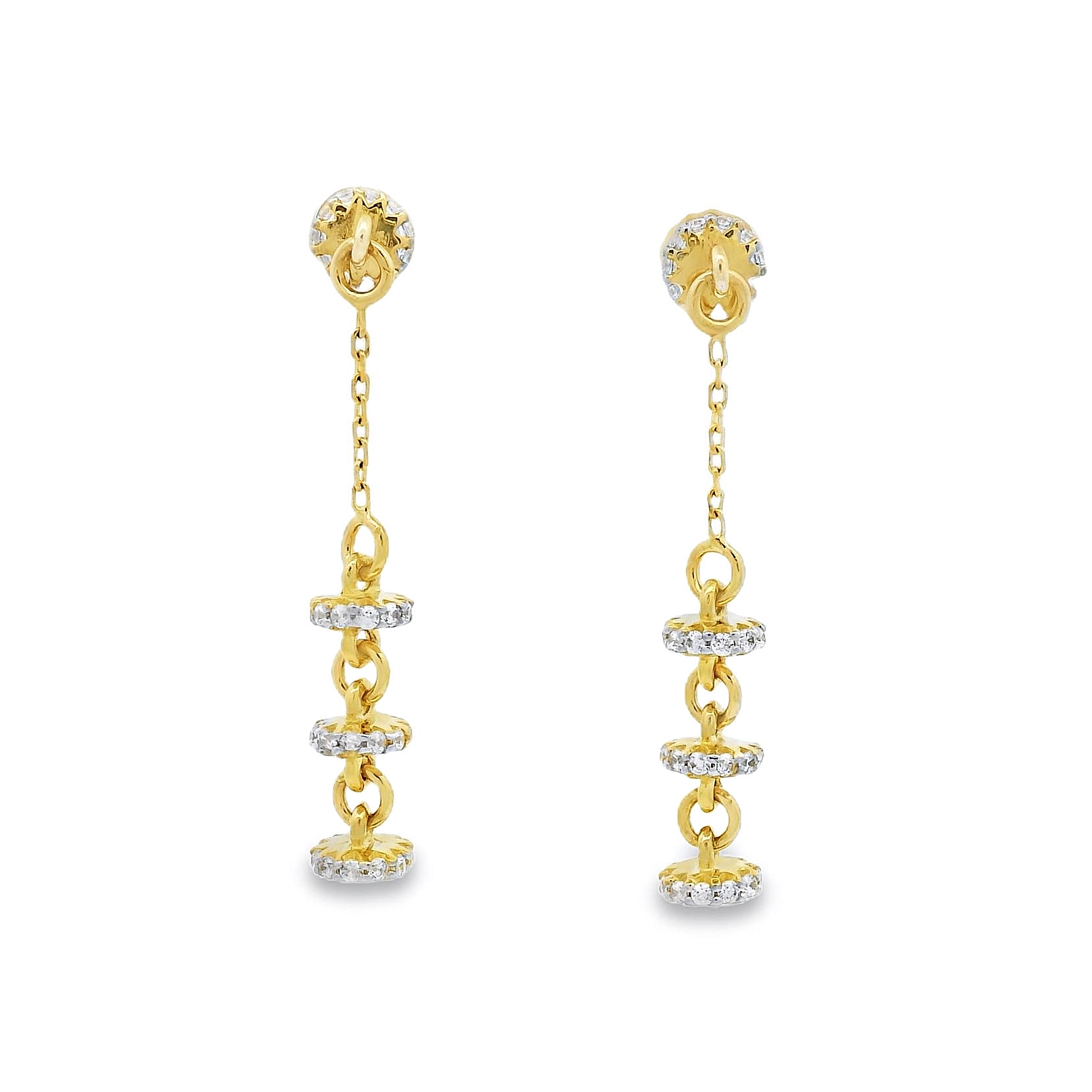 Σκουλαρίκια γυναικεία σε χρυσό 14 καρατίων με πέτρες ζιργκόν.