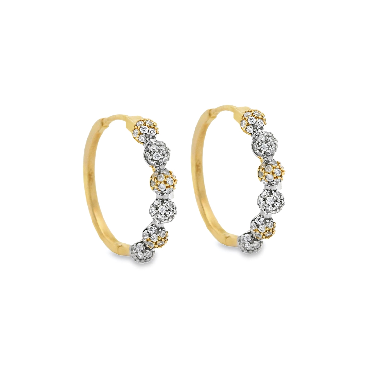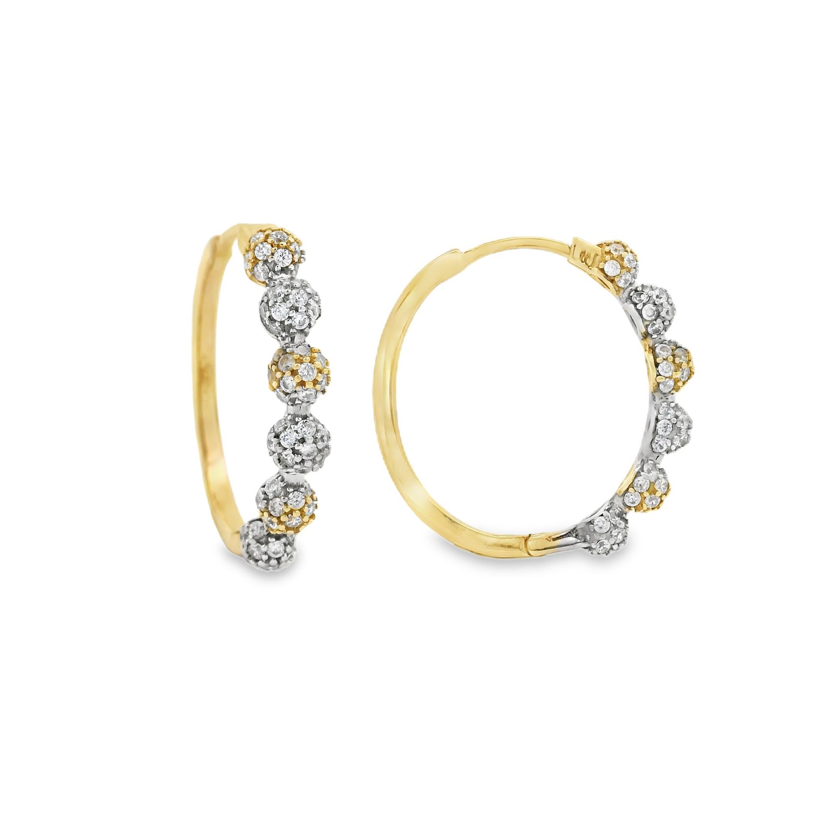 Σκουλαρίκια γυναικεία δίχρωμο σε λευκό και κίτρινο χρυσό 14 καρατίων με πέτρες ζιργκόν.