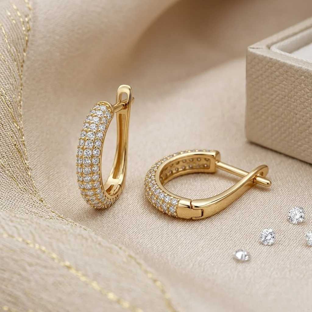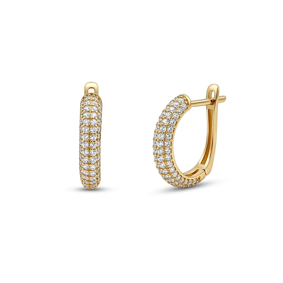 Αναδείξτε τη θηλυκότητά σας με ένα ζευγάρι σκουλαρίκια που συνδυάζουν την κλασική γοητεία των κρίκων με τη μοντέρνα πολυτέλεια των πολύτιμων λίθων. Κατασκευασμένοι από χρυσό 9 Καρατίων, αυτοί οι κρίκοι είναι πλήρως καλυμμένοι με τρεις σειρές λαμπερών ζιργκόν, δημιουργώντας μια συνεχή επιφάνεια φωτός. Λόγω της λάμψης τους, λειτουργούν υπέροχα ως το βασικό σας κόσμημα (statement piece) αν έχετε μαζεμένα τα μαλλιά σας, ή σε συνδυασμό με ένα minimal χρυσό κολιέ.