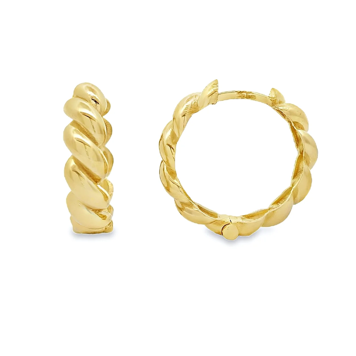 Σκουλαρίκια κρίκοι, σε κίτρινο χρυσό 14 καρατίων λουστρε. Διάμετρος 19mm.