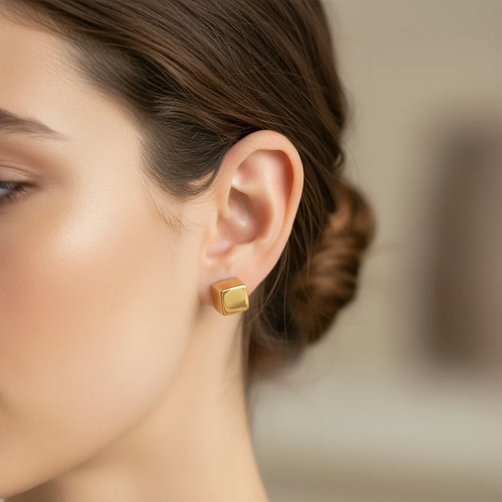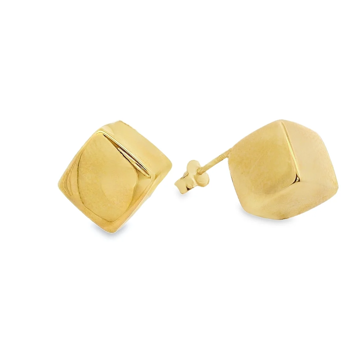 Σκουλαρίκια κύβος, σε κίτρινο χρυσό 14 καρατίων λουστρε. Διάμετρος 1cm.