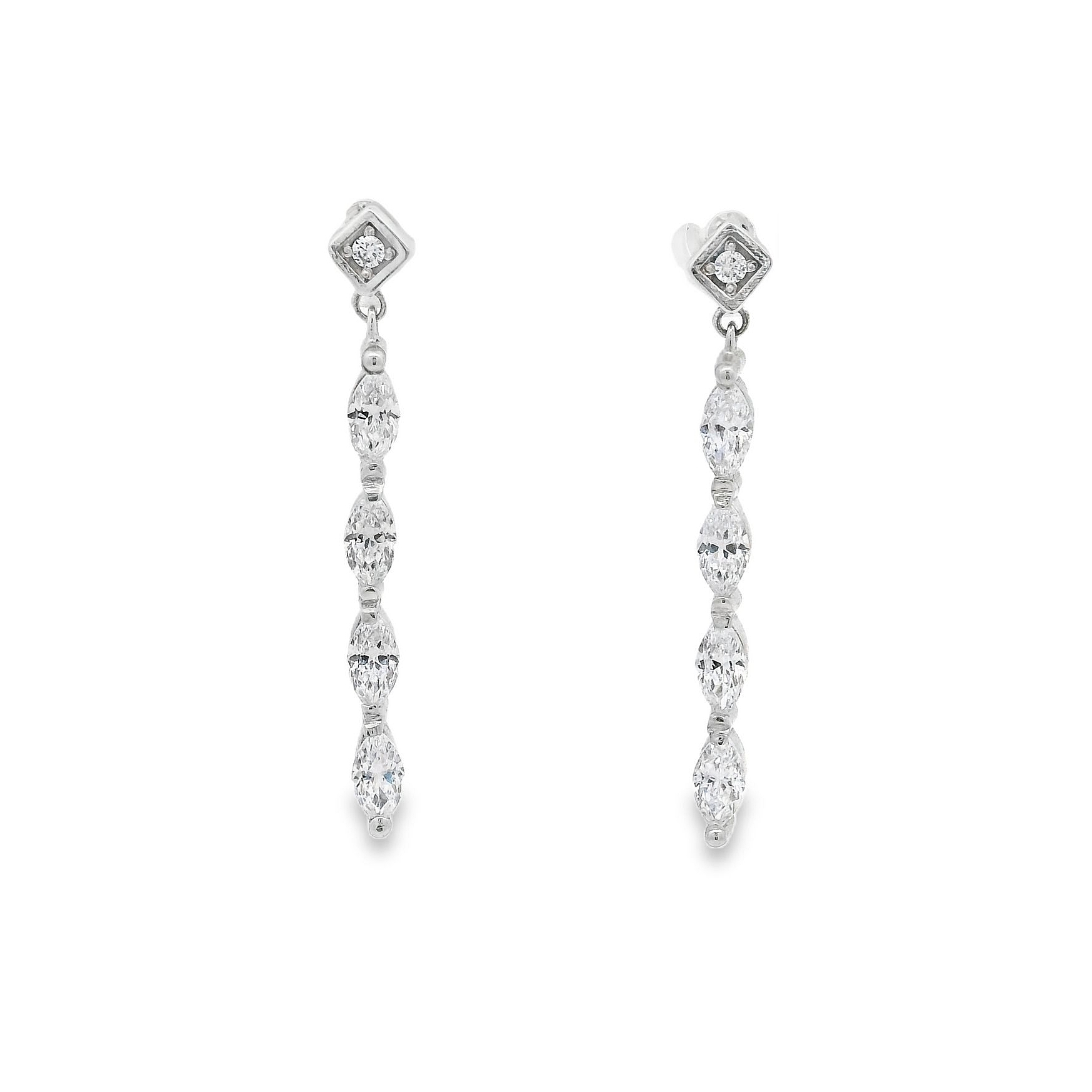 Σκουλαρίκια κρεμαστά με ζιργκόν σε λευκόχρυσο 14 καρατίων.