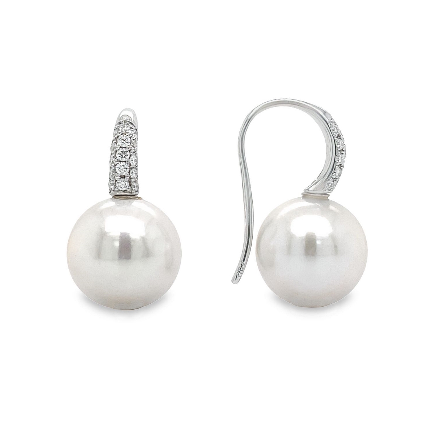 Σκουλαρίκι σε λευκό χρυσό 18 καρατίων με φυσικά μαργαριτάρια 11.50mm και λευκά διαμάντια σε κοπή μπριγιάν συνολικού βάρους 0.24ct χρωματος F και καθαρότητας VS.