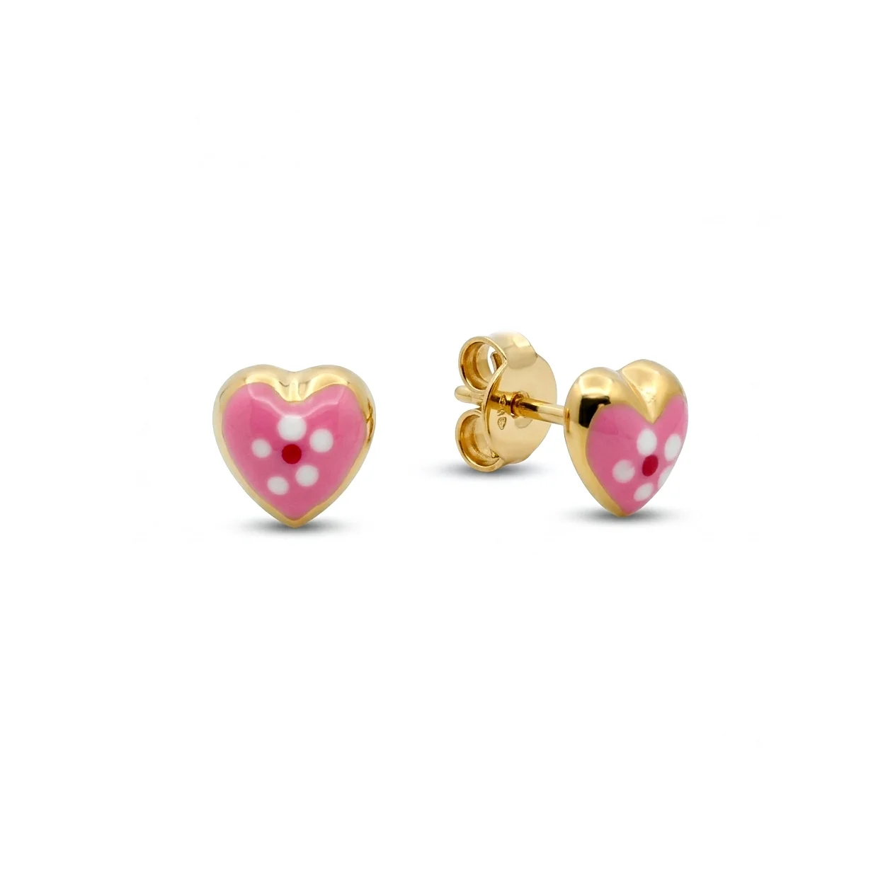 Σκουλαρίκια Παιδικά Καρδιά με Ροζ Σμάλτο σε κίτρινο χρυσό 9 καράτια.