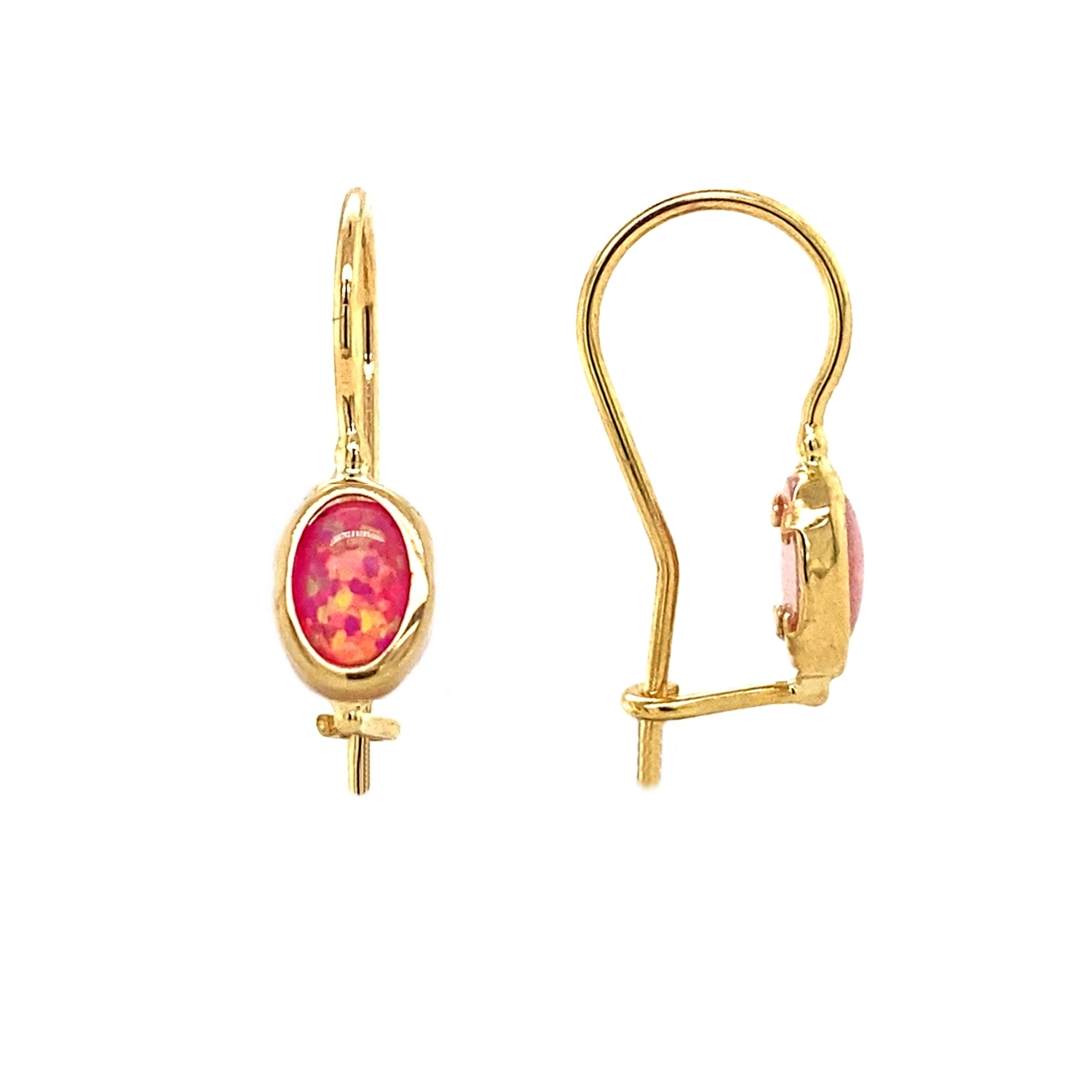 Σκουλαρίκια παιδικά κρεμαστά με Ροζ πέτρες σε κίτρινο χρυσό 9 καράτια.