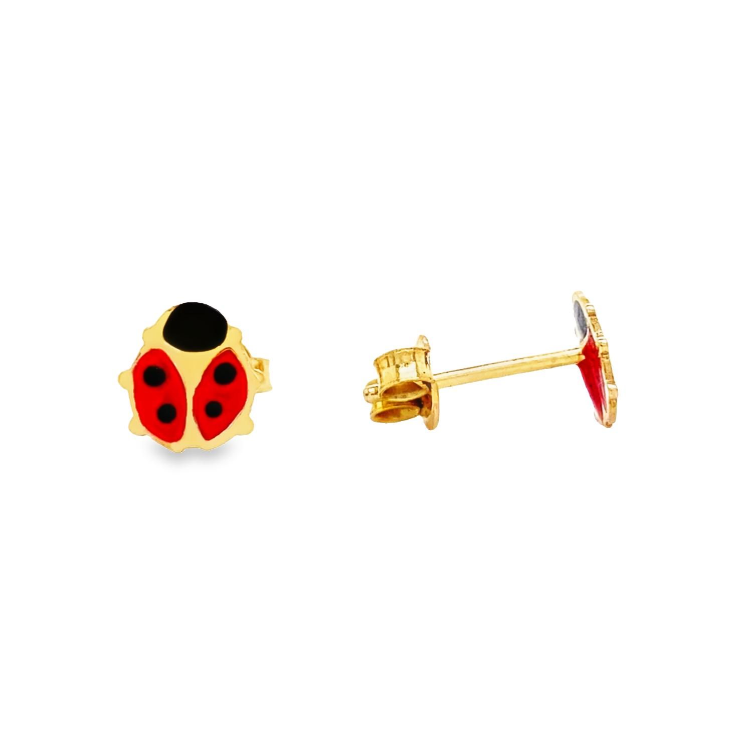 Σκουλαρίκια παιδικά πασχαλίτσα με κόκκινο σμάλτο σε κίτρινο χρυσό 9 καράτια.