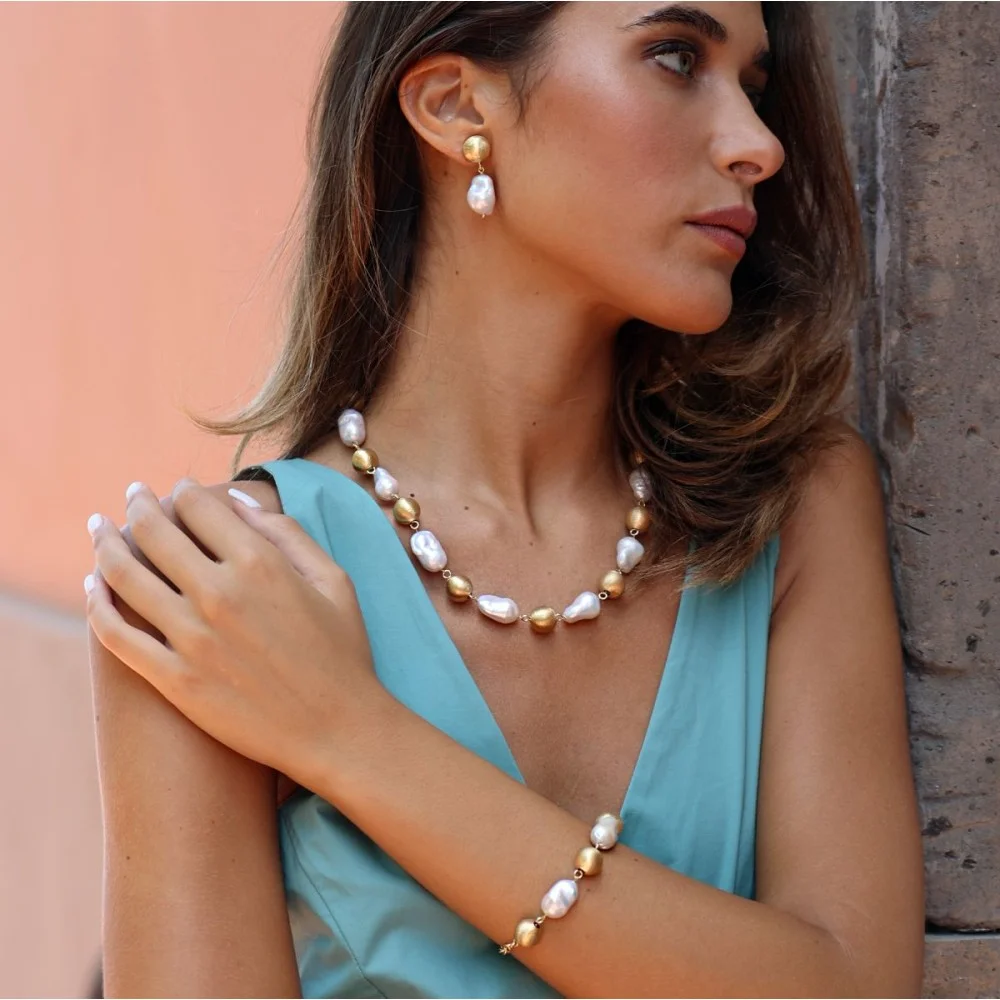 Σκουλαρίκια Marcello Pane από επιχρυσωμένο ασήμι 925 με μαργαριτάρια baroque