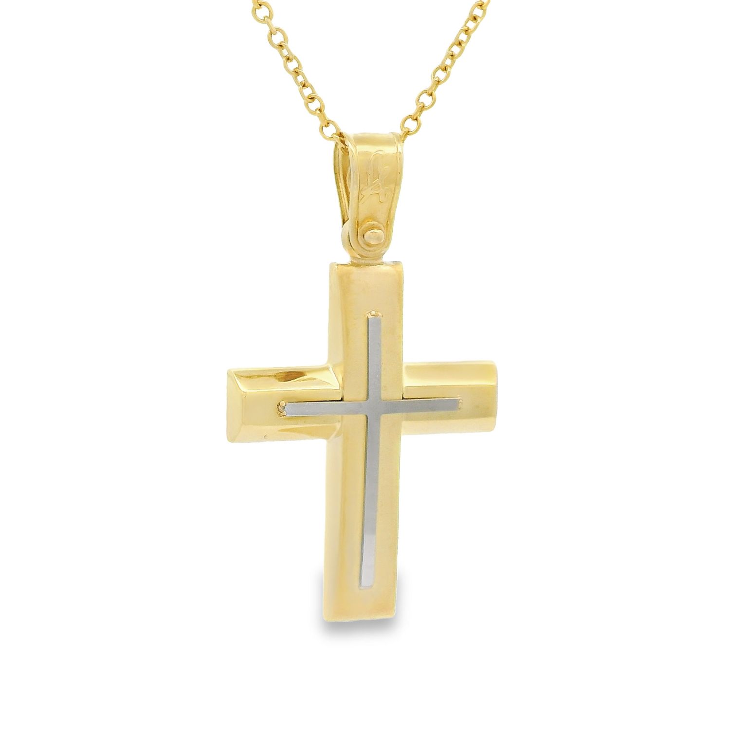 Ανδρικός σταυρός σε κίτρινο χρυσό 14 καράτια. Η αλυσίδα πωλείται χωριστά.