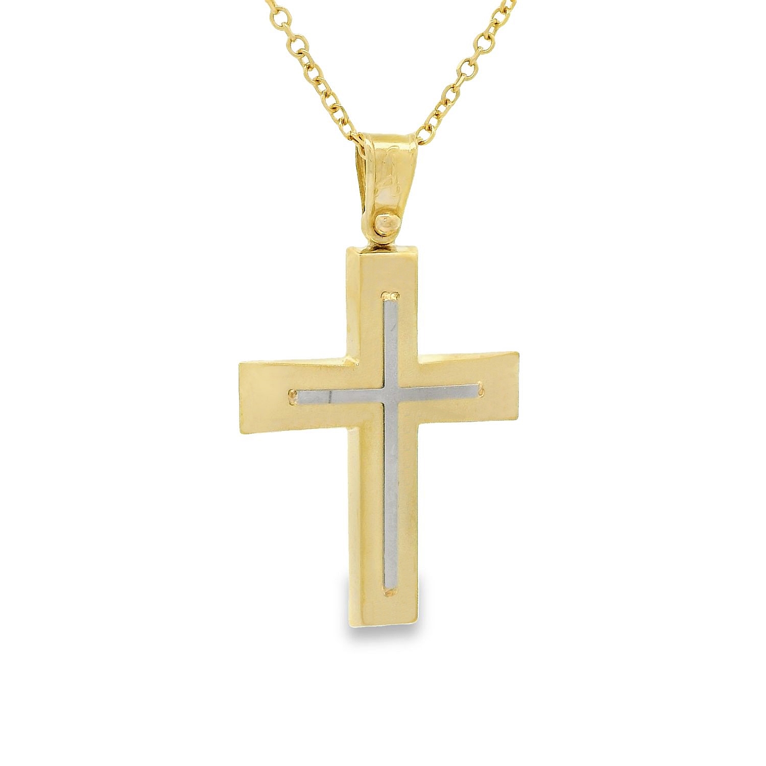 Ανδρικός σταυρός σε κίτρινο χρυσό 14 καράτια. Η αλυσίδα πωλείται χωριστά.