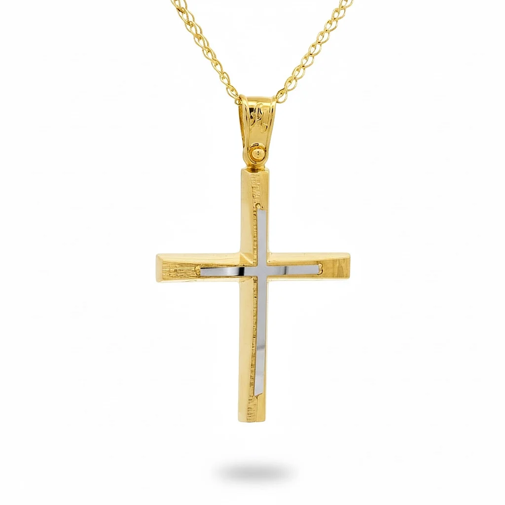 Σταυρός ανδρικός σε κίτρινο χρυσό 14 καράτια. Η αλυσίδα πωλείται χωριστά.