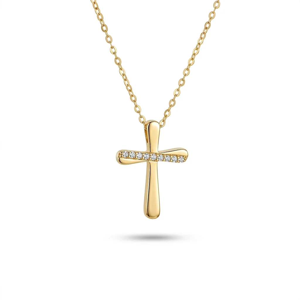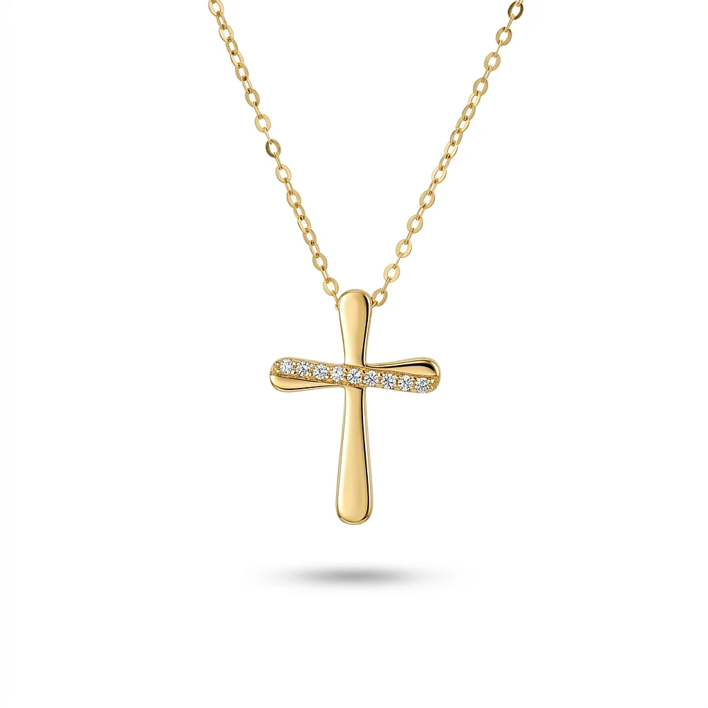 Ανακαλύψτε ένα κόσμημα που ξεφεύγει από τα συνηθισμένα. Αυτός ο κομψός σταυρός, κατασκευασμένος από χρυσό 9 Καρατίων, διαθέτει έναν μοναδικό σχεδιασμό με καμπύλες που αγκαλιάζουν μια κεντρική σειρά από λαμπερά ζιργκόν, προσφέροντας μια αίσθηση κίνησης και φινέτσας. Μια εξαιρετική λύση για ένα πολύτιμο δώρο σε πολύ προσιτή τιμή, που συνδυάζει την εγγύηση του πραγματικού χρυσού με μοντέρνα αισθητική.