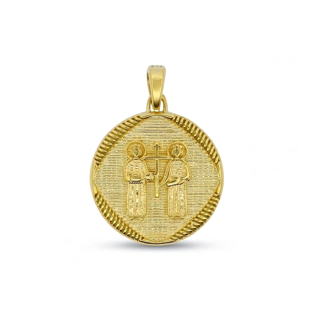 Φυλαχτό κωνσταντινάτο διπλής όψης σε χρυσό 9 καρατίων και πέτρες ζιργκόν.