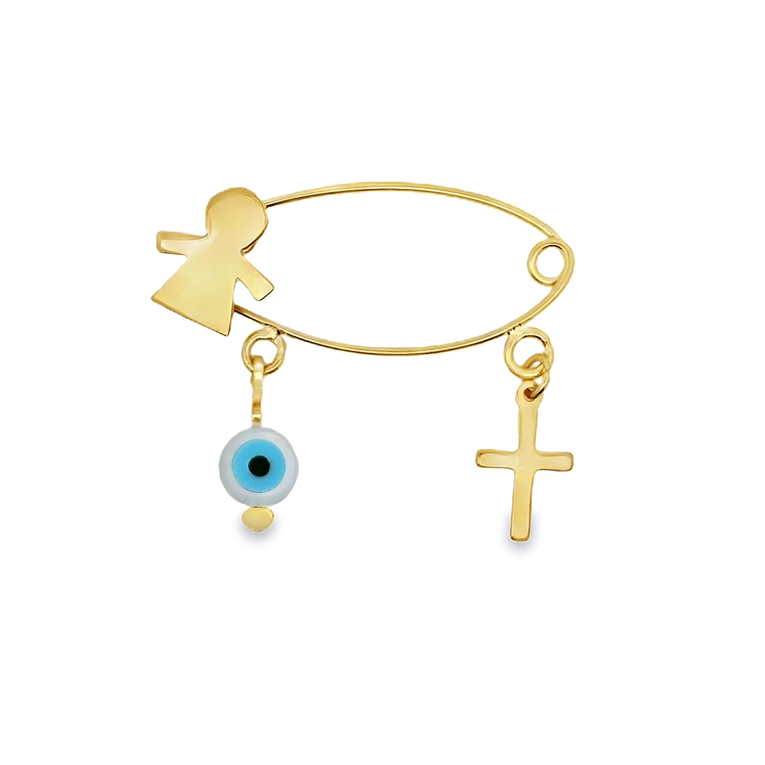 Φυλαχτό παραμάνα παιδική με Σταυρό, παιδάκι και ματάκι σε χρυσό 9 καρατίων.