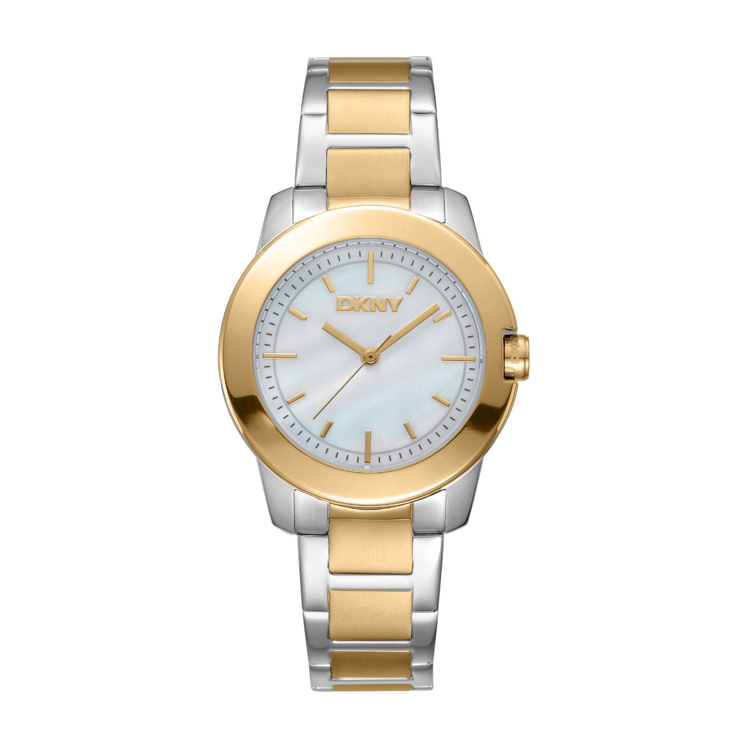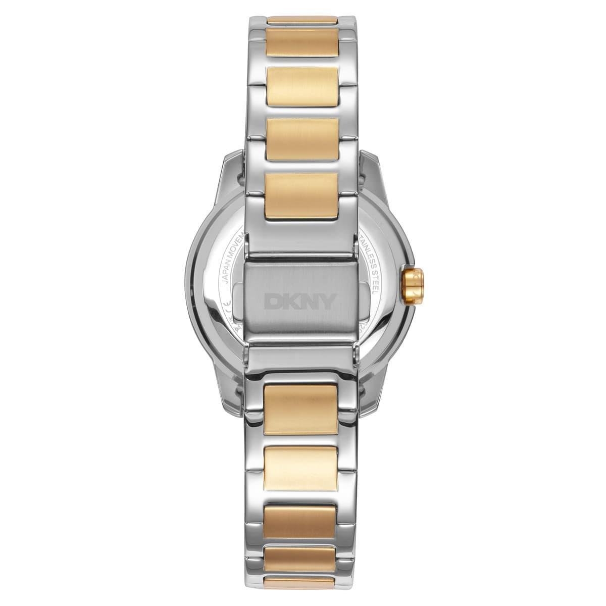 Γυναικείο ρολόι DKNY από δίχρωμο ανοξείδωτο ατσάλι με καντράν από λευκό φίλντισι και μπρασελέ.