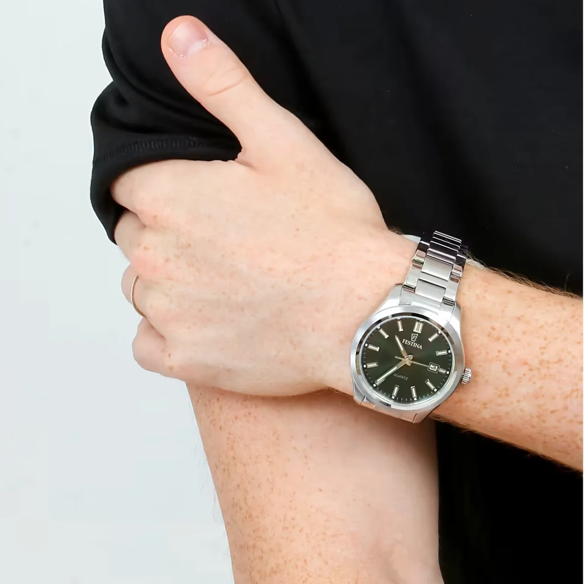 Ανδρικό ρολόι Festina από ανοξείδωτο ατσάλι με μαύρο καντράν και μπρασελέ.