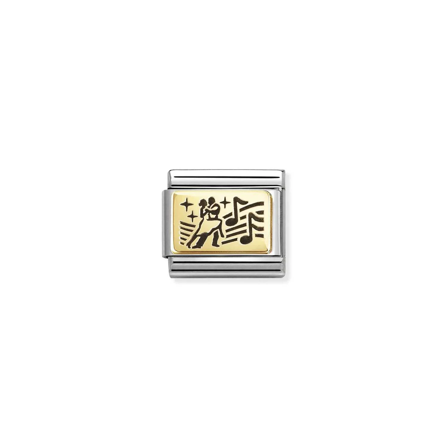 Original Nomination Composable Classic Link for Composable bracelet in stainless steel with yellow gold plate with Black enamel Dancing Couple symbol. This Link is the perfect Link for anyone who loves to live life on the dance floor.