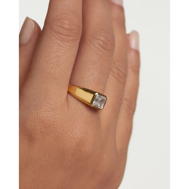 Δακτυλίδι PDPAOLA από επιχρυσωμένο ασήμι 925 και πέτρες ζιργκόν. Διαθέσινο σε νουμερο 54 και 56.