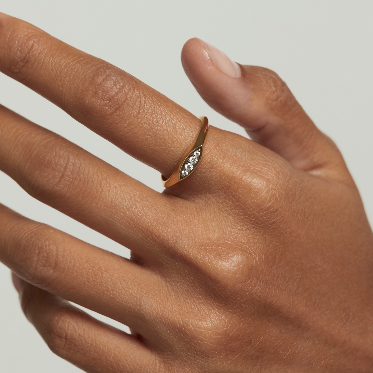 Δακτυλίδι PDPAOLA από επιχρυσωμένο ασήμι 925 και πέτρες ζιργκόν. Διαθέσινο σε νουμερο 52.