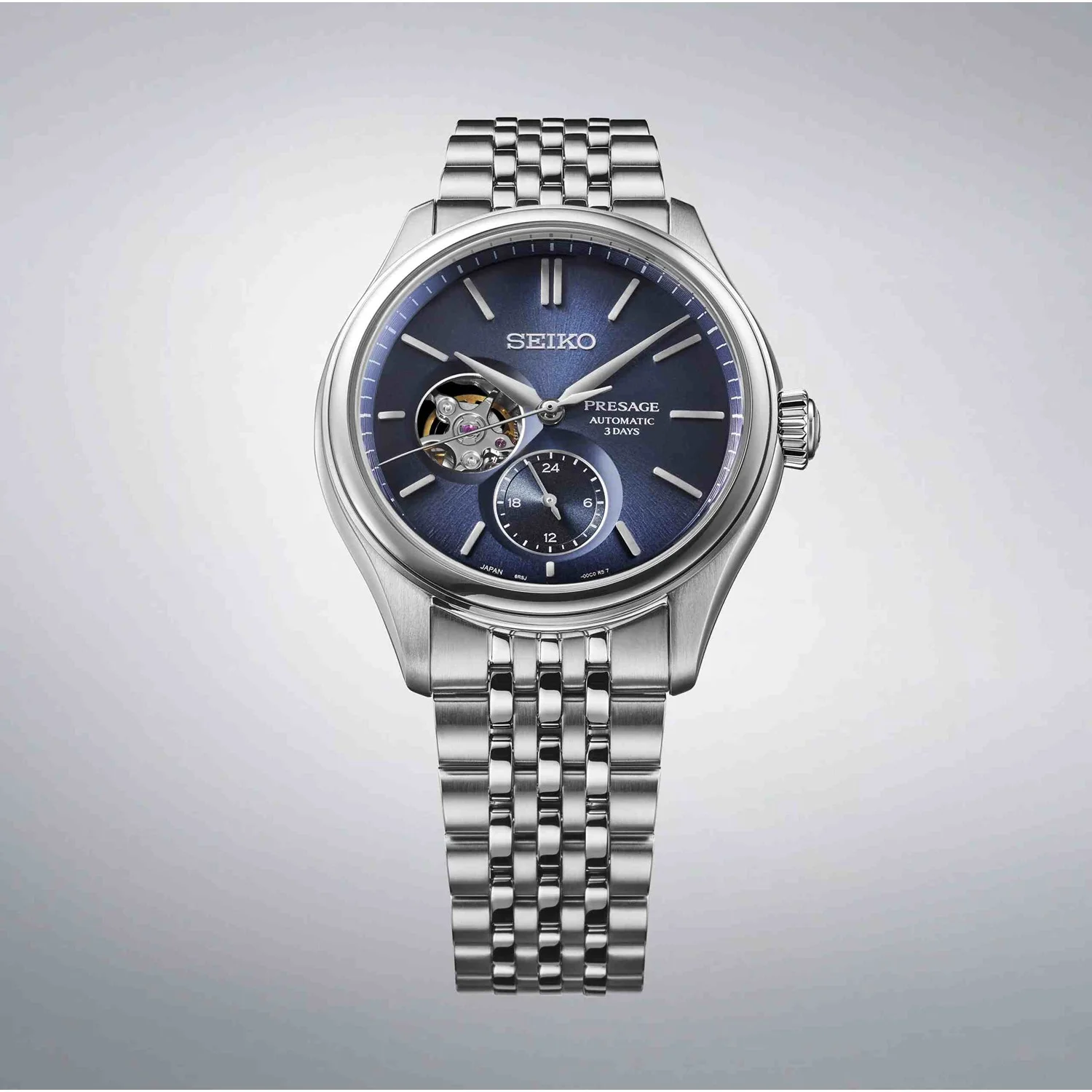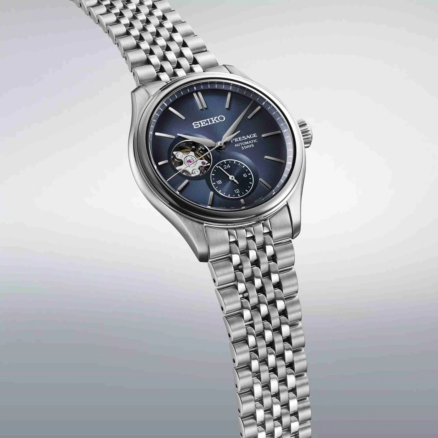 Από τη σειρά Presage Classic – ρολόγια σχεδιασμένα με την εγγενή ιαπωνική κομψότητα, αυτό το ρολόι ονομάζεται «Ai-iro» λόγω του ινδικοχρώματος του καντράν του – ένα χρώμα που ήταν πολύ δημοφιλές κατά την περίοδο Έντο της Ιαπωνίας, μεταξύ 1603 και 1868. Το «Ai-iro» θεωρούνταν «τυχερό χρώμα» για τους σαμουράι πολεμιστές – κατά τη διάρκεια της περιόδου Meiji από το 1868 έως το 1912, οι πόλεις καλύπτονταν με αυτό το χρώμα, με αποτέλεσμα οι ξένες χώρες να το ονομάσουν «Japan Blue». Η υφή του καντράν είναι εμπνευσμένη από το απαλό μετάξι – ένα δημοφιλές ιαπωνικό υλικό από την αρχαιότητα, που χρησιμοποιείται συχνά στη διακόσμηση σπιτιών και στην ένδυση.